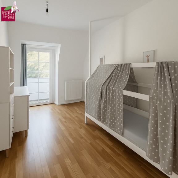 Drei Schlafzimmer, eines davon mit Balkon und Grünblick