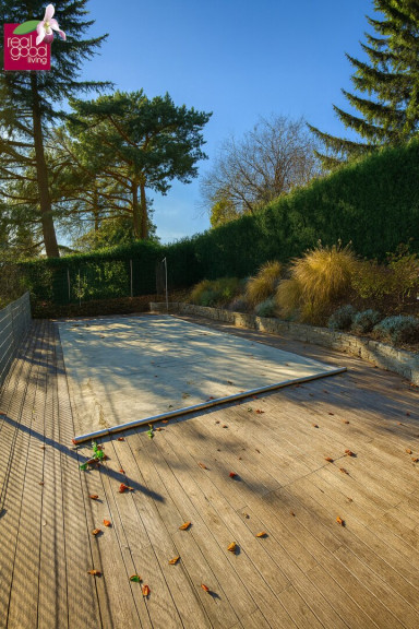 Ca. 500 m² Garten mit Kräuterbeeten, gepflegten Grünflächen & großem Pool (kindersicher)