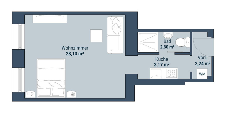Großzügiger Wohn-Schlafraum, der dank seiner Form vielfältige Gestaltungsmöglichkeiten bietet – gemütlich, hell und einladend