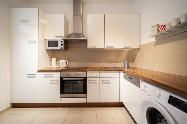 The apartment is located in a quiet residential area of the second district. The nearby underground station provides quick access to the city centre, and shops, cafés and green areas are easy to reach on foot.