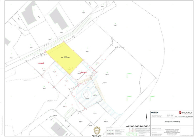 Der im Plan skizzierte Baukörper (mögliche Bebauung) ermöglicht eine Bebauung von einem Erd- und Obergeschoß sowie einem Kellergeschoß mit einer Nettowohnnutzfläche von zusammen ca. 310 qm.