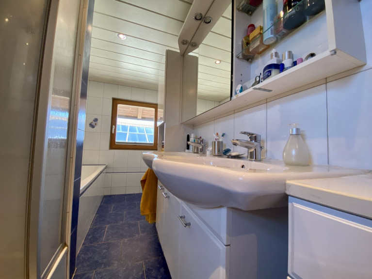 Das Badezimmer in der Wohnung EG/OG ist aus dem Jahre 2014.