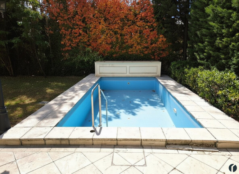 Sonnige Terrasse, die Außenküche und der Pool schaffen ein angenehmes Ambiente, das den Alltag spürbar bereichert.