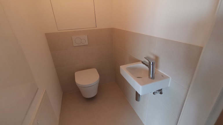 - hohe Materialqualität in den Sanitärräumen und modernste Sanitärtechnologie („Tornado-Flush“ im WC / spülrandlose Keramik)