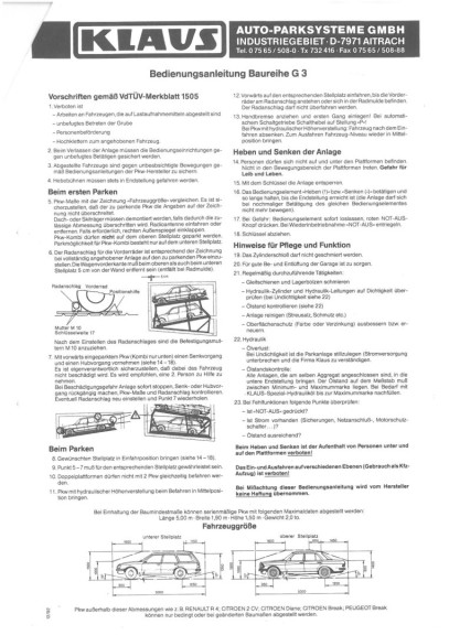 Die Maße für einstellbare Fahrzeuge sind den beigefügten Plänen zu entnehmen.
