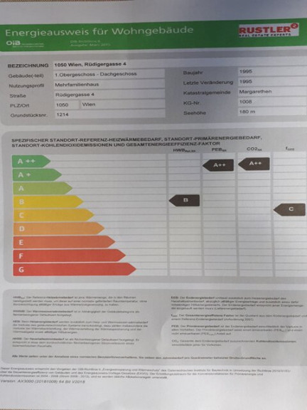 - Ein Energieausweis für diese Immobilie wurde beim Eigentümer schriftlich angefordert und über die neue Rechtslage (EAVG 2012) wurde schriftlich aufgeklärt!