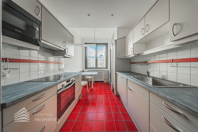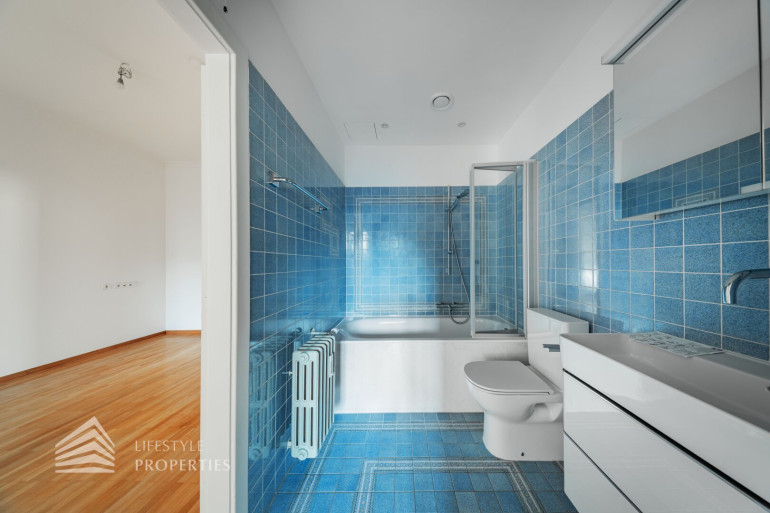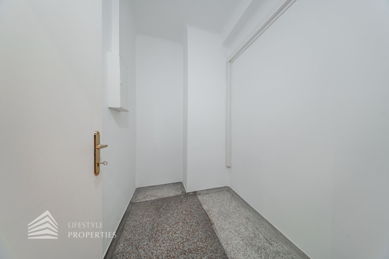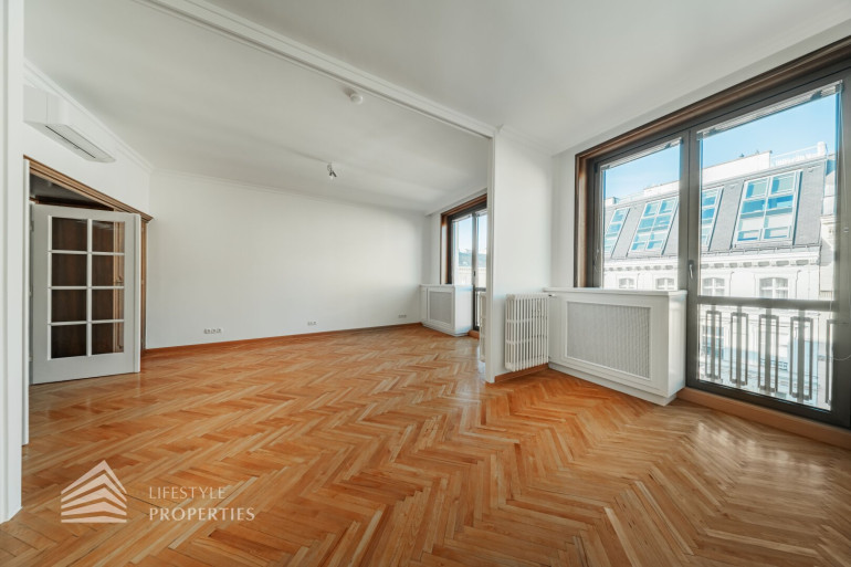 Der hofseitige Teil der Wohnung bildet das Herzstück: Zwei weitläufige Räume, die zu einem ca. 35 m² großen Wohnzimmer verbunden sind und eine absolute Ruhelage genießen. Dieser Bereich eignet sich perfekt als stilvoller Wohn- und Entspannungsbereich inmitten des pulsierenden Stadtzentrums. Sowohl der große Vorraum als auch das Wohnzimmer sind mit Klimaanlagen ausgestattet, die für angenehmes Raumklima zu jeder Jahreszeit sorgen.