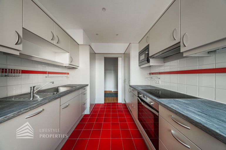 Parkett, Fliesen, Zentralheizung, Einbauküche, Personenaufzug, Badewanne, Kabel/Satelliten-TV, Garage, Tiefgarage, Sicherheitskamera