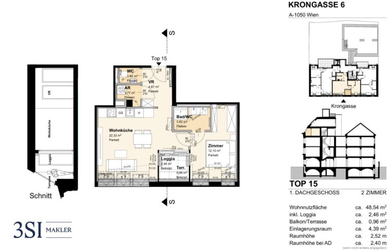 Der guten Ordnung halber halten wir fest, dass, sofern im Angebot nicht anders vermerkt, bei erfolgreichem Abschlussfall eine Provision anfällt, die den in der Immobilienmaklerverordnung BGBI. 262 und 297/1996 festgelegten Sätzen entspricht – das sind 3 % des Kaufpreises zzgl. 20% USt. Diese Provisionspflicht besteht auch dann, wenn Sie die Ihnen überlassenen Informationen an Dritte weitergeben. Letztlich weisen wir darauf hin, dass wir als Doppelmakler tätig sind und ein familiäres/wirtschaftliches Naheverhältnis zwischen der 3SI Makler GmbH und der Verkäuferin besteht.
