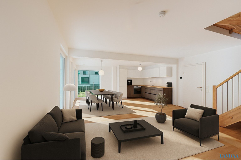 Zwischen Wienerwald und Stadt entstehen 20 Häuser, die zeitloses Design mit nachhaltiger Bauweise verbinden. Großzügige Fensterflächen, helle Räume und private Gärten schaffen ein offenes, natürliches Wohngefühl mit Blick ins Grüne.