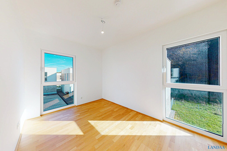 Zwischen Wienerwald und Stadt entstehen 20 Häuser, die zeitloses Design mit nachhaltiger Bauweise verbinden. Großzügige Fensterflächen, helle Räume und private Gärten schaffen ein offenes, natürliches Wohngefühl mit Blick ins Grüne.