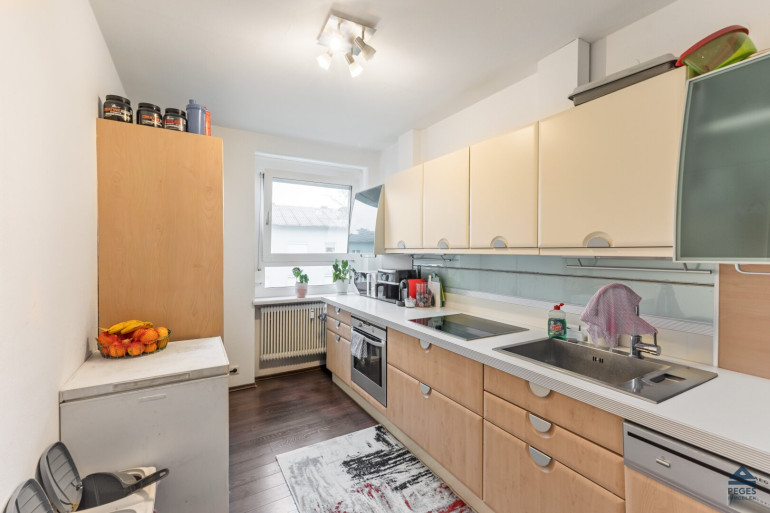 Die Wohnung mit einer Wohnfläche von ca. 62,60 m² zuzüglich Balkon mit ca. 4,70 m² liegt im 3. Stock des Hauses (Dachgeschoss - ohne Lift) und befindet sich in einem ordentlichen und gepflegten Zustand – mit dunklen Laminatboden, eingerichteter Marken-Küche, Bad mit Badewanne und eigenem Waschmaschinenanschluss, etc. Für Stauraum sorgt ein geräumiges Kellerabteil.