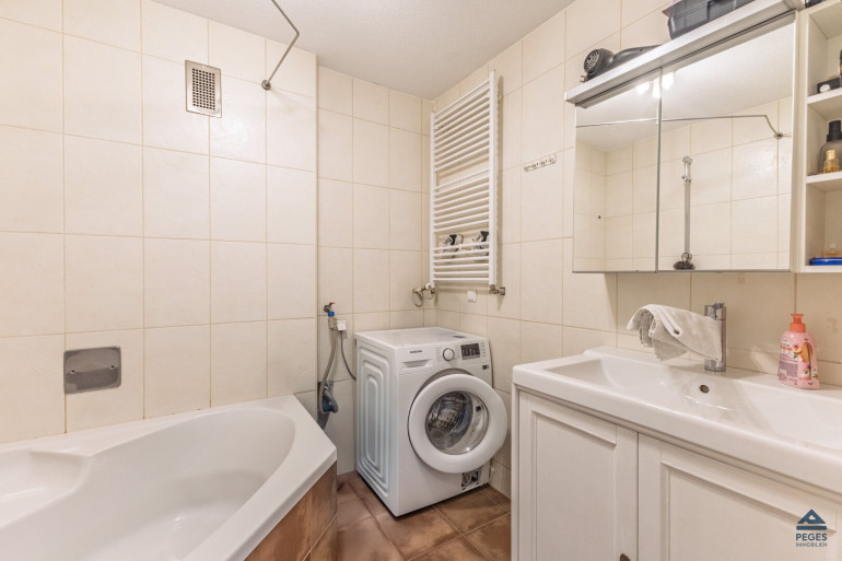 Fliesen, Laminatboden, Zentralheizung, Einbauküche, Badewanne, Parkplatz, Wasch/Trockenraum