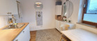 Zur Wohnung gehören außerdem zwei Kellerräume, von denen einer derzeit als Lagerraum und der andere als Hobbyraum (- renoviert; samt neuem Bodenbelag, Einbauküche und mit modernem Infrarot-Paneel beheizt) genutzt wird. Eine geräumige Garage ist der Wohnung ebenfalls zugeordnet.