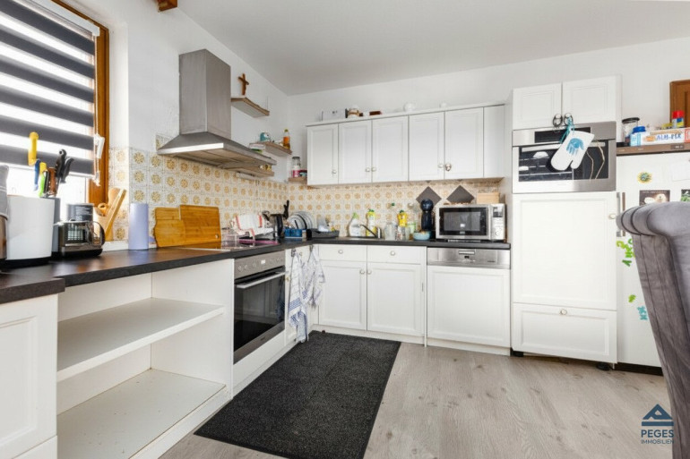 Zentralheizung, Wohnküche / offene Küche, Einbauküche, Bad mit Fenster, Badewanne, Garage