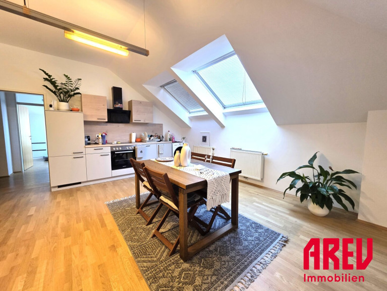 Diese helle Dachgeschosswohnung mit 75,01 m² befindet sich im 2. Stock eines gepflegten Wohnhauses und überzeugt durch ihren besonderen Charme und gemütliche Dachfenster, die für eine warme, einladende Atmosphäre sorgen. Die geschmackvolle Einbauküche lädt zum Kochen ein. Der großzügige Wohn/Essbereich überzeugt mit seinem offenen Raumgefühl.