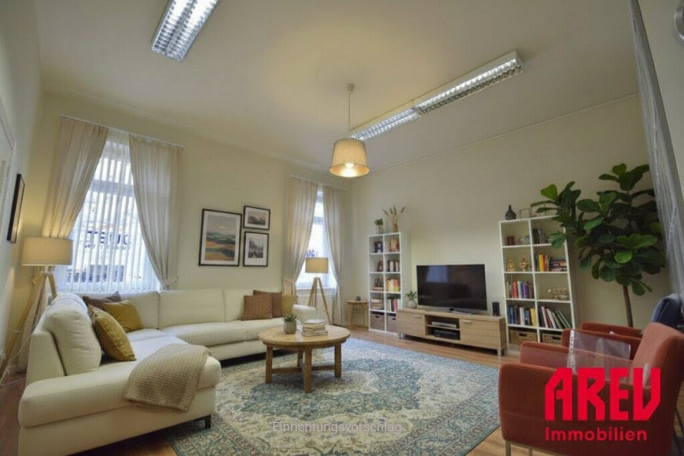 Die Zimmer sind individuell gestaltbar und bieten ausreichend Platz zum Wohnen oder auch um Leben und Arbeiten zu verbinden. Die Fläche wird derzeit als Büro genützt, eignet sich aber auch hervorragend als Wohnung. Lassen Sie sich von den Bildern mit unseren Einrichtungsvorschlägen inspirieren und begeistern !