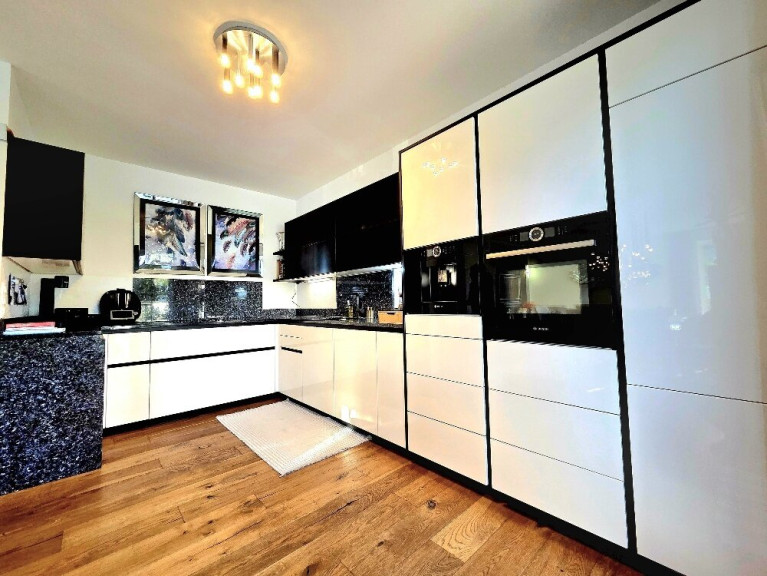 Das Highlight für Genießer: Eine hochwertige Dan-Küche mit edler Granitplatte, modernen Bosch-Geräten und einem praktischen Bora Ceranfeld. Hier macht Kochen und Leben Freude!