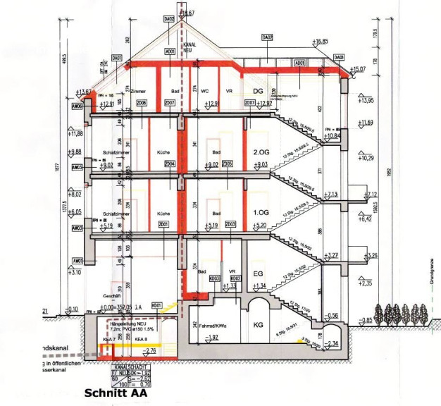 Es ist geplant die Geschäftsfläche im EG zu verkleinern und in Ausrichtung Hof eine barrierefreie Wohnung herzustellen.