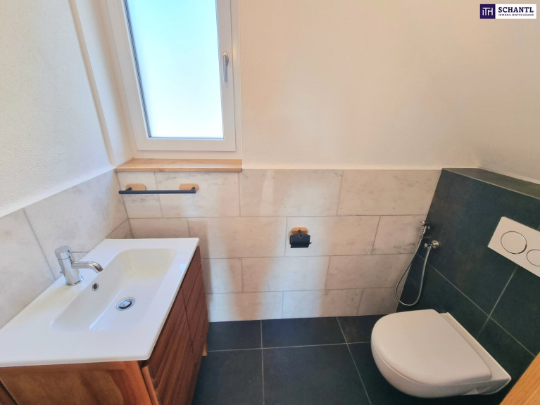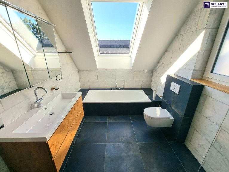 Ihr neue Wohnung wird Sie restlos begeistern und teilt sich auf der 1.Ebene in einen geräumigen Vorraum mit Platz für eine Garderobe, ein separates WC mit Fenster und Waschbecken, ein stylisches und großes Badezimmer mit Badewanne, Walk-In Dusche, 2.WC und Fenster, 2 getrennt begehbare, gemütliche Schlafzimmer sowie das Herzstück der Wohnung - ein lichtdurchflutetes Wohn-Esszimmer mit einer hochwertigen und voll ausgestatteten Einbauküche und Zugang zur Traumterrasse.