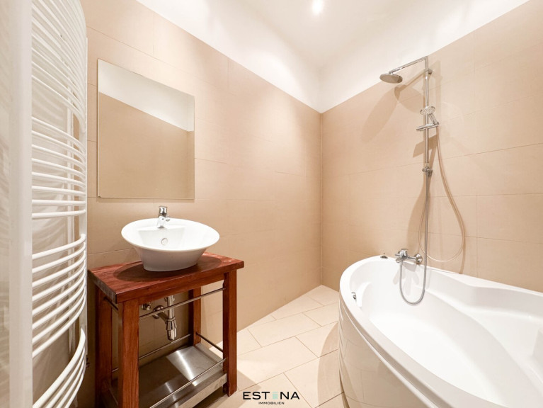 Parkett, Gas, Einbauküche, Personenaufzug, Badewanne, Garage