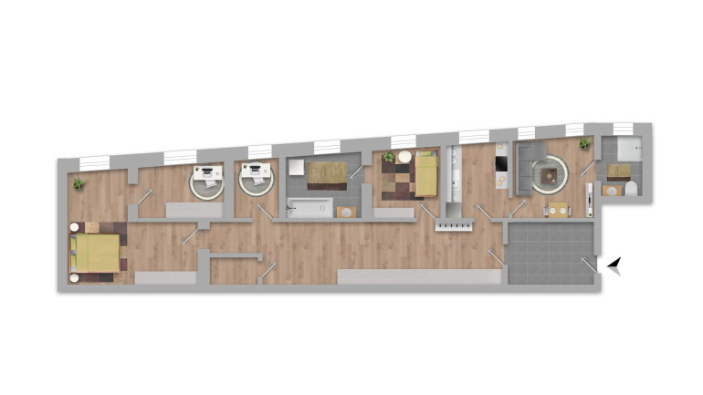 Vorraum - Diele - Bad und WC - Wohnzimmer - Küche - Esszimmer - Kinderzimmer 1 - Vorraum - Schlafzimmer - Kinderzimmer 2