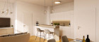 Im Vorraum und in den Nassbereichen kommen zeitlose Fliesen zum Einsatz, während in den Wohn- und Schlafräumen ein edler Eichen-Parkettboden verlegt wird.