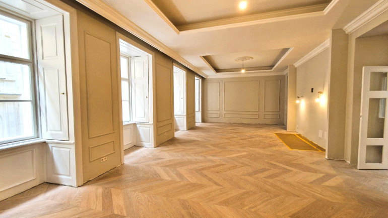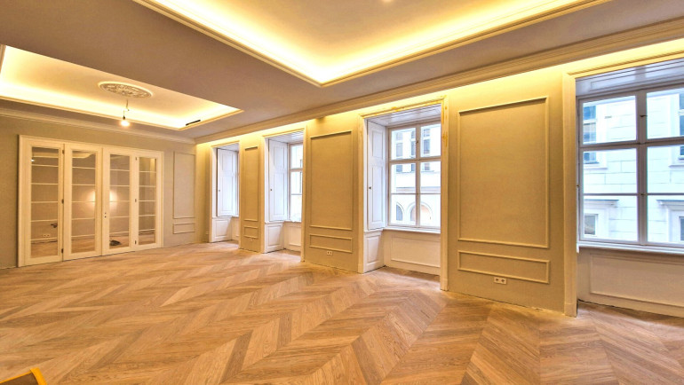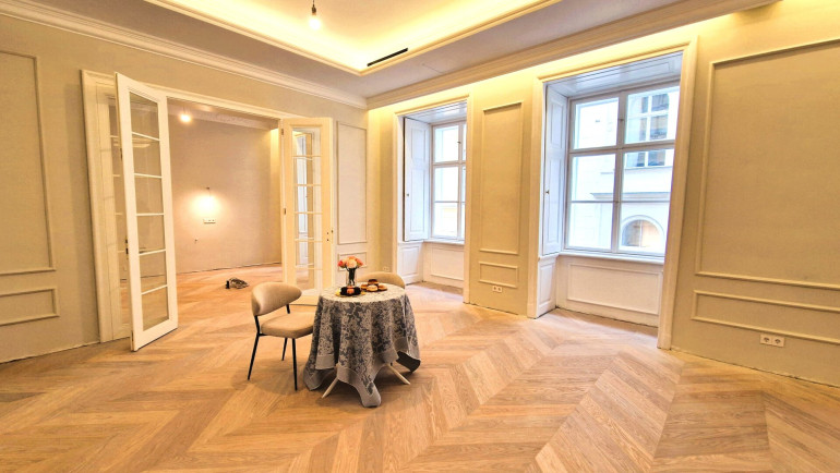 Zum Verkauf steht eine außergewöhnliche, ca. 195 m² große Altbau-Residenz im Herzen Wiens. Das repräsentative Objekt wird derzeit umfassend generalsaniert und verbindet stilvolle Eleganz mit einer perfekt durchdachten Raumaufteilung. Die Fertigstellung ist für Jänner 2026 anberaumt. Großzügige Fensterflächen sorgen für eine beeindruckende Helligkeit in allen Räumen und schaffen eine einladende, freundliche Wohnatmosphäre.