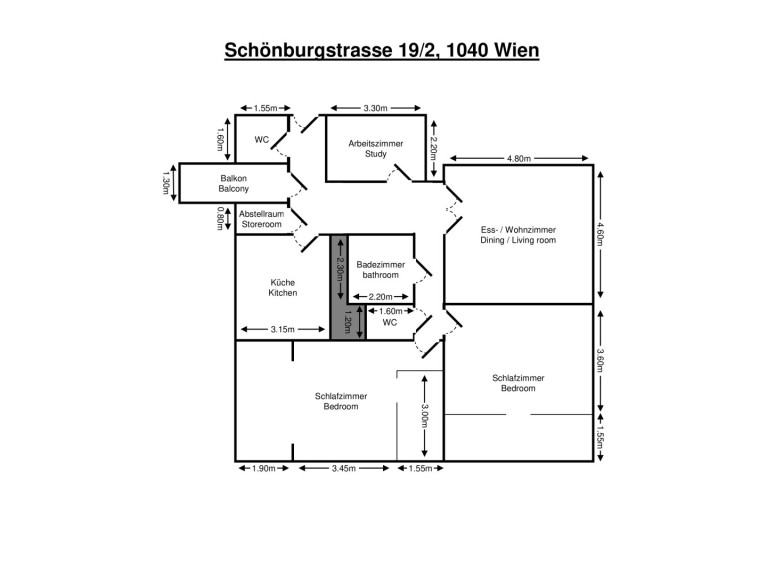 Bei der Renovierung dieser gut-geschnittenen Wohnung wurde bei der Auswahl der verwendeten Materialen große Sorgfalt angewandt. Die hervorragend erhaltenen Original-Fischgrät-Parketten wurden wunderschön aufbereitet und geölt. Die Wohnung ist mit Bedacht gewählten Möbelstücken sowie Leuchten und Lampen bestückt. Sie geben der Wohnung ihren attraktiven "Spirit" und Charakter. Einbauten wie z.B. begehbare Schränke in den Schlafzimmern, erweisen sich als besonders praktisch. Äußerst charmant wirkt die Podest-artige Anhebung des Bodens beim Fensterbereich im hofseitigen Schlafzimmer. Große Fensterflächen sorgen für gute Ausleuchtung mit Tageslicht. Das Kabinett verfüg lediglich über ein schmales Fenster zum Vorraum, was aber besonders ansprechend wirkt.