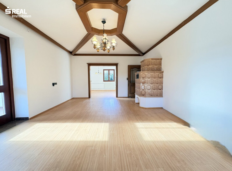 Dieses gut erhaltene Wohnhaus überzeugt durch einen durchdachten Grundriss mit hellen, freundlichen Räumen. Es eignet sich sowohl für große Familien als auch für eine Nutzung als Zwei-Parteien-Haus, da das Dachgeschoss einen separaten Eingang bietet. Im Erdgeschoss finden sich eine offene Wohn-Essküche, ein Wohnzimmer mit Kachelofen, ein Wintergarten, ein Zimmer, ein Bad mit Wanne, WC und ein Vorraum. Das Dachgeschoss umfasst vier Zimmer, zwei Bäder und eine Diele, wobei eines der Zimmer aktuell als Küche genutzt wird.