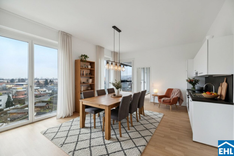 Die hochwertig ausgestatteten Neubauwohnungen mit durchdachten Grundrissen verfügen über großzügige Freiflächen wie Balkone, Loggien oder Terrassen mit sensationellen Blick ins Grüne die sich hervorragend als persönlichen Rückzugsort anbieten um die Seele baumeln zu lassen. Durch die bodentiefen Fenster sind die Wohnungen lichtdurchflutet und geben das Gefühl, der Natur ganz nahe zu sein.