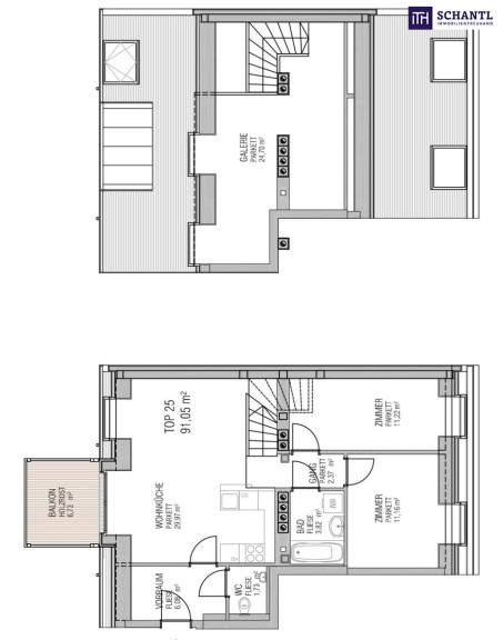 Wohnfläche: ca. 91,05m² + Balkon: ca. 6,73m²