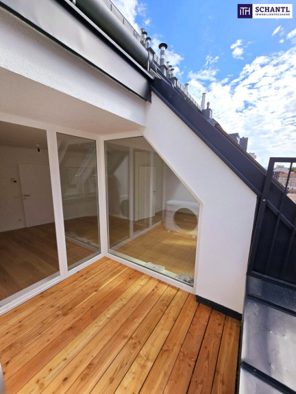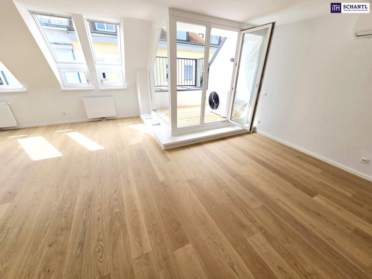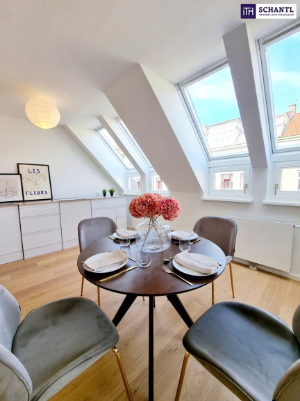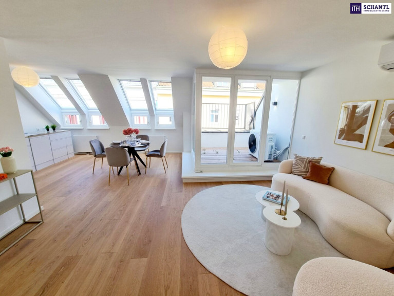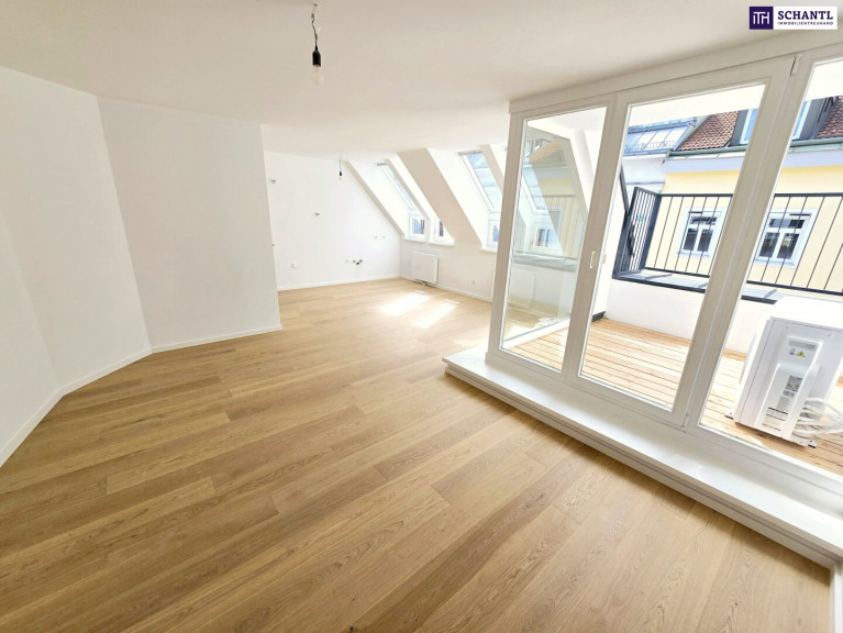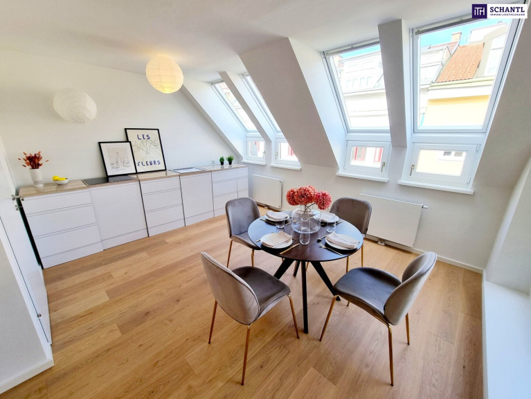 Ihre neue und frisch sanierte Wohnung im Dachgeschoss wird Sie restlos begeistern und teilt sich auf der 1.Ebene in einen geräumigen Vorraum mit Platz für eine Garderobe und ein gemütliches Heimkommem, ein separates Gäste-WC mit Handwaschbecken, einen praktischen Abstellraum mit Waschmaschinenanschluss, sowie einen riesigen Wohn-Essbereich mit Zugang zur kuscheligen Terrasse. Der großzügige Küchenbereich ist leicht abgeteilt und hat Zugang zu einer Speis.