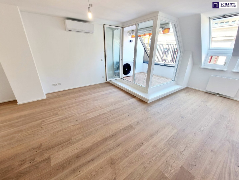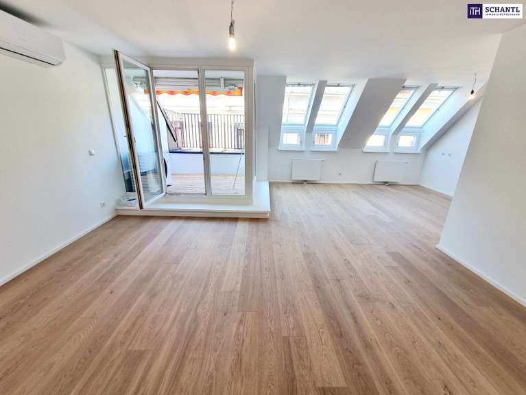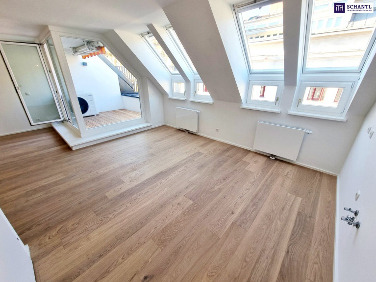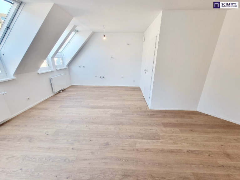 Ihre neue und frisch sanierte Wohnung im Dachgeschoss wird Sie restlos begeistern und teilt sich auf der 1.Ebene in einen geräumigen Vorraum mit Platz für eine Garderobe und ein gemütliches Heimkommem, ein separates Gäste-WC mit Handwaschbecken, einen praktischen Abstellraum mit Waschmaschinenanschluss, sowie einen riesigen Wohn-Essbereich mit Zugang zur kuscheligen Terrasse. Der großzügige Küchenbereich ist leicht abgeteilt und hat Zugang zu einer Speis.