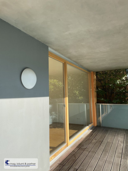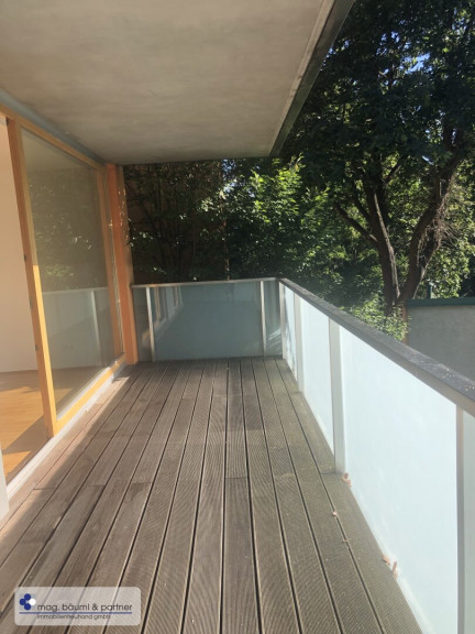 Im zweiten Liftstock eines stilvollen, modernen Neubaus liegt diese 2 Zimmerwohnung mit einer großen Fensterfront in den Garten. Der vorgelagerte Balkon ist mit der Fläche von 13 m² ein Frühlings, Sommer und Herbstwohnzimmer. Durch die Überdachung kann man die Möbel draußen stehen lassen.