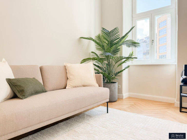 Stellen Sie sich vor, Sie betreten Ihr neues Zuhause – eine frisch sanierte Altbauwohnung im 2. Stock eines charmanten Gründerzeithauses, wo jedes Detail mit Bedacht und Liebe gestaltet wurde. Schon beim Eintreten empfängt Sie eine neue Sicherheitseingangstür, die nicht nur Schutz verspricht, sondern auch einen ersten Eindruck von modernem Stil vermittelt. Die Wohnung öffnet sich in eine Welt aus Licht und Wärme, dank ihrer perfekten Ost-West-Ausrichtung, die den Tag mit sanftem Morgenlicht beginnt und ihn mit goldenen Sonnenuntergängen ausklingen lässt.