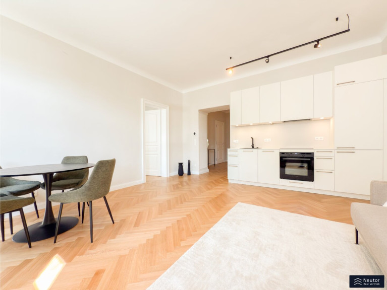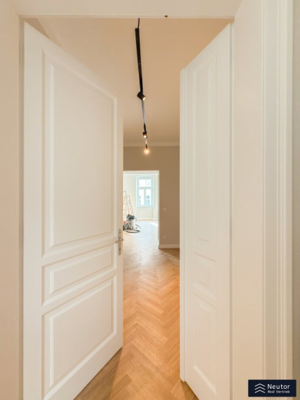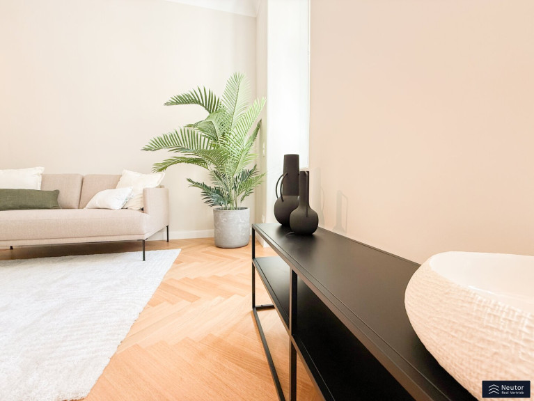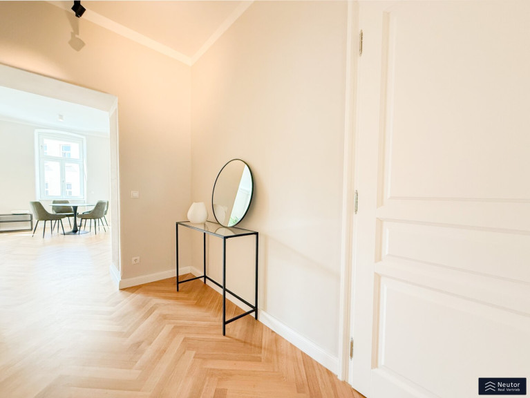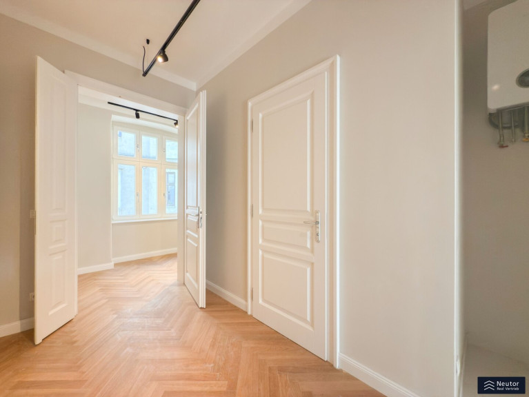 Schon beim Betreten dieser Wohnung spürt man den Charme der frisch renovierten Altbau-Substanz. Die wunderschönen, neuen Flügeltüren im Altwienstil verleihen den Räumen einen Hauch von Eleganz, während die geschmackvolle Modernisierung für höchsten Wohnkomfort sorgt.