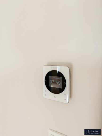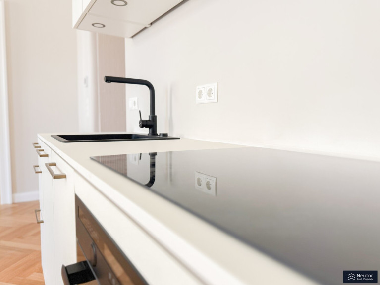 Das Herzstück dieses Zuhauses ist die großzügige Wohnküche, die sich gegen Westen erstreckt. Hier genießen Sie einen weitläufigen Blick, der die Seele beruhigt, während Sie in der nagelneuen Einbauküche kulinarische Meisterwerke zaubern oder einfach mit Ihren Liebsten verweilen. Zwei weitere Zimmer, ruhig und ostseitig und westseitig gelegen, schenken Ihnen Rückzugsorte voller Frieden – sei es für erholsamen Schlaf, konzentriertes Arbeiten oder kreative Momente. Unter Ihren Füßen erstreckt sich ein edler Fischgrät-Parkettboden, der mit seiner zeitlosen Eleganz jeden Raum veredelt, während die moderne Fußbodenheizung mit Einzelsteuerung für wohlige Wärme sorgt, genau so, wie Sie es wünschen.