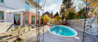 Der Garten mit Salzwasserpool und großzügiger Terrassenfläche für Sitzgruppe und Sonnenbetten hinter dem Haus ist ein verstecktes Paradies, das von der Straße aus nicht einsehbar ist.