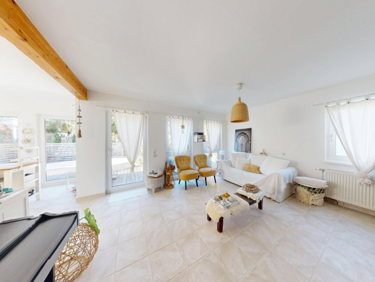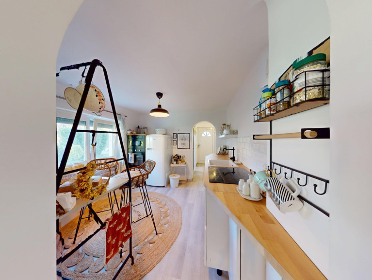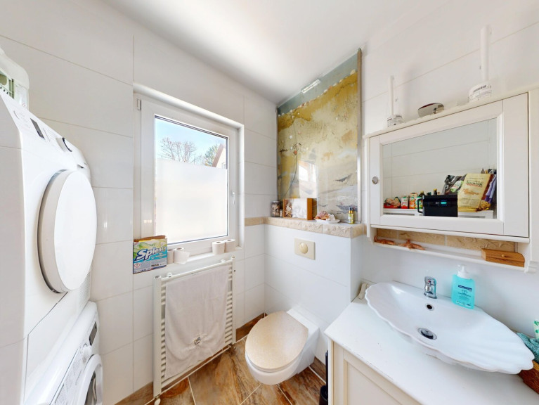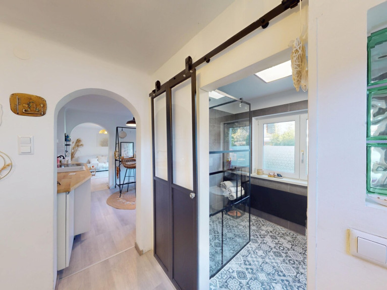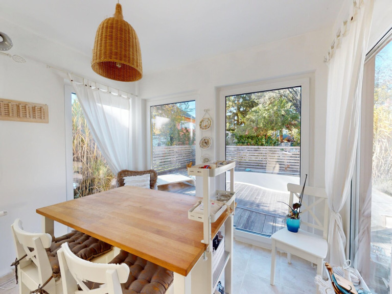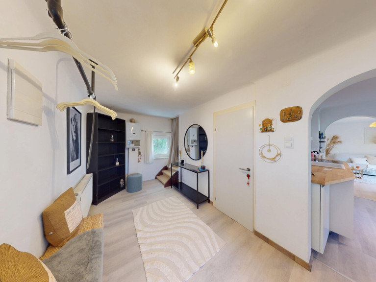 Das kleinere Haus daneben wurde ca. um 1950 errichtet und im Jahr 2008 und 2023 saniert. Es wirkt auf den ersten Blick wie eines der typischen Airbnb-Häuschen, die man auch im Sommerurlaub gerne mieten möchte, um entspannte Tage zu genießen. Genauso ist dieses Haus aber auch ein vollwertiges Wohnhaus mit Gartenblick und Wohlfühlatmosphäre.