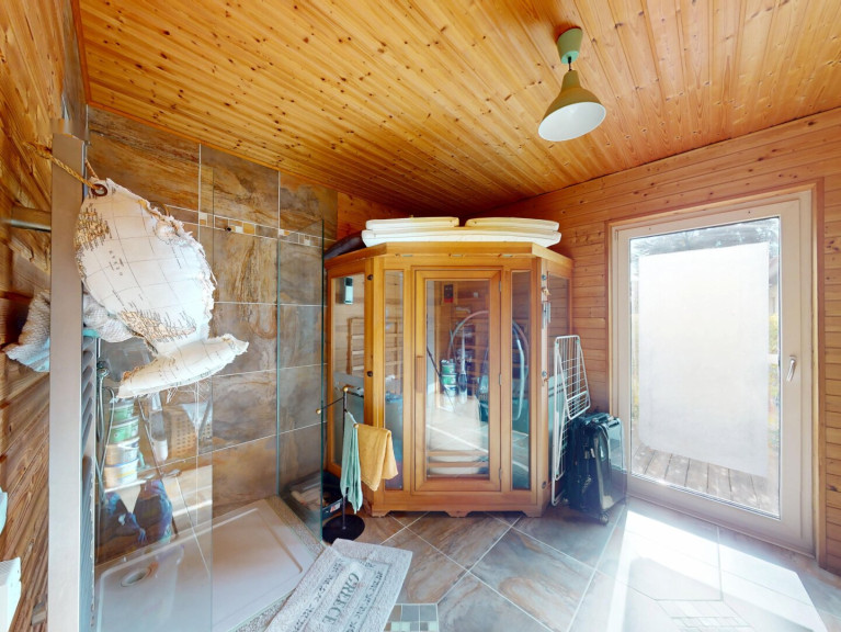 - Heizsysteme: Gastherme; Fußbodenheizung (Wasser) und Heizkörper in Wohnzimmer (EG) und Bad (OG); Elektro Fußbodenheizung in Wohnzimmer, Vorzimmer und Saunaraum
