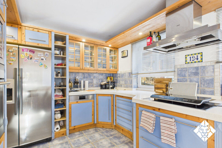 Das Haus vereint traditionelle Architektur mit einem durchdachten, großzügigen Raumkonzept. Der Wohnbereich ist auf Offenheit und Geselligkeit ausgerichtet: warme Holzoberflächen, ein zentral positionierter Barbereich und große Fensterfronten schaffen eine helle, einladende Atmosphäre.