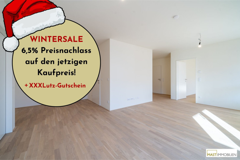 In der kalten Jahreszeit lassen wir die Preise schmelzen: Beim Kauf einer Eigentumswohnung in einem unserer Objekte in der Berresgasse ersparst du dir bis 31.3.2026 die Nebenkosten* und bekommst so jede Wohnung um 6,5% günstiger.