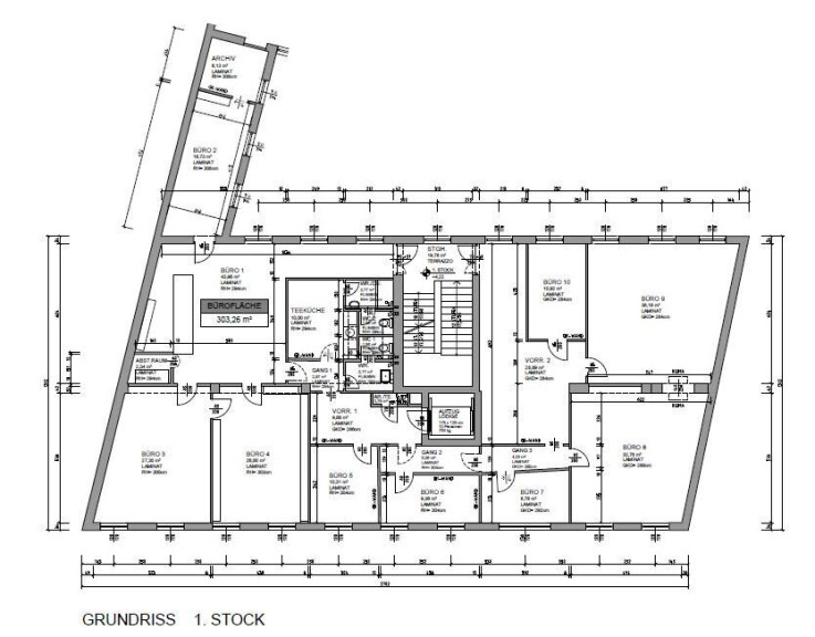 Zur unbefristeten Vermietung gelangt eine ca. 303m² große Bürofläche im ersten Liftstock mit aktuell 10 Einzelbüros in verschiedenen Größen und einer Teeküche. Das Objekt hat zwei Eingänge, ist kreisförmig begehbar und könnte auch abgetrennt werden.