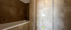 - 2 Badezimmer mit Badewanne, Handwaschbecken und Toilette