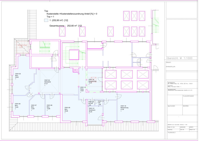 Die Fläche von rund 250 m² im 1. Obergeschoß (Lift wird im Zuge eines Umbaus errichtet) bietet vielseitige Nutzungsmöglichkeiten. Eine Teilung in kleinere Einheiten ist gegebenenfalls möglich; der Mietpreis richtet sich nach der Größe, den gewünschten Adaptierungen sowie der Ausstattung. Die Betriebskosten betragen rund € 1,66/m².