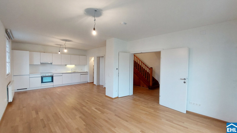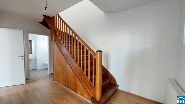 Im Erdgeschoß erwartet Sie ein einladender Eingangsbereich, ein großzügiger Wohnbereich mit Küchenzeile, Speis und Zugang zum Balkon, außerdem ein separates WC.