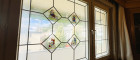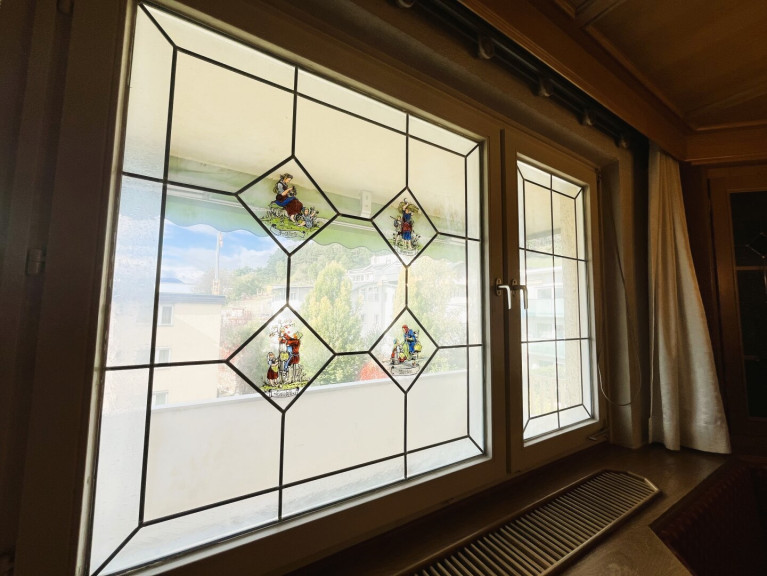 - bemalte Fensterscheiben mit schönen Land-Motiven (im Zimmer 2)