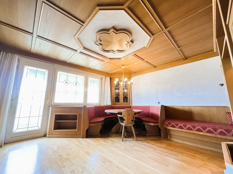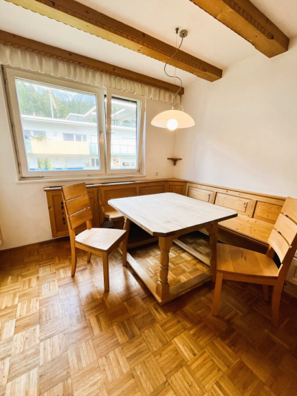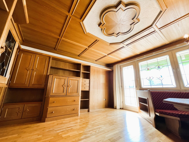 Die sehr gut geschnittene Immobilie überzeugt neben einer schönen Echtholzküche im gemütlichen Landhausstil durch hochwertige Echtholzparkettböden von der Eiche und Esche sowie einen langgestreckten, überdachten Süd-West-Balkon, welcher sogar von 2 Zimmern zugänglich ist. Passend zum behaglichen Landhaus-Design wurden schöne Holz-Türen aus Fichte, robuste sowie funktionale, maßangefertigte Tischlermöbel und im ca. 25m² großen, westlich ausgerichteten Zimmer handbemalte, zeitlos schöne Fensterscheiben mit charmanten Landmotiven verbaut, um eine warme, einladende Atmosphäre zum Wohlfühlen zu schaffen. Sowohl vom ca. 25m² großen als auch vom ca. 16m² großen Zimmer gelangt man auf den sonnigen Balkon mit wunderschönem Tiroler Bergpanorama, welchen man durch die Überdachung auch bei Regentagen genießen kann. Das praktische Badezimmer verfügt über ein Waschbecken, eine Badewanne und einen Waschmaschinenanschluss. Zudem gibt es noch ein EXTRA- WC. Ausreichend Stauraum bieten neben den großzügig, geschnittenen Zimmern auch das eigene Kellerabteil sowie die Garage mit ca. 15m².