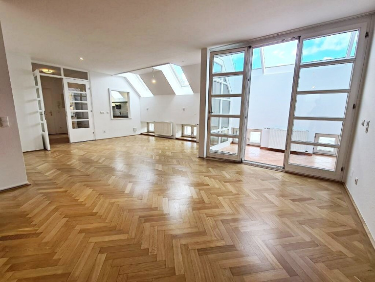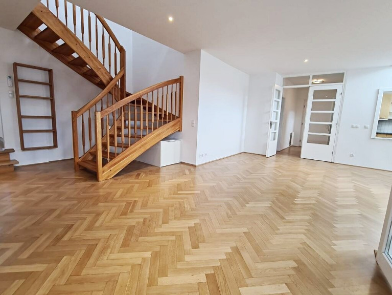 TOPLAGE, BÖRSE-NÄHE, klimatisierte 157 m2 Maisonette mit 18 m2 Terrasse, 4 Zimmer, Küche, Wintergarten, 2 Bäder, Zelinkagasse